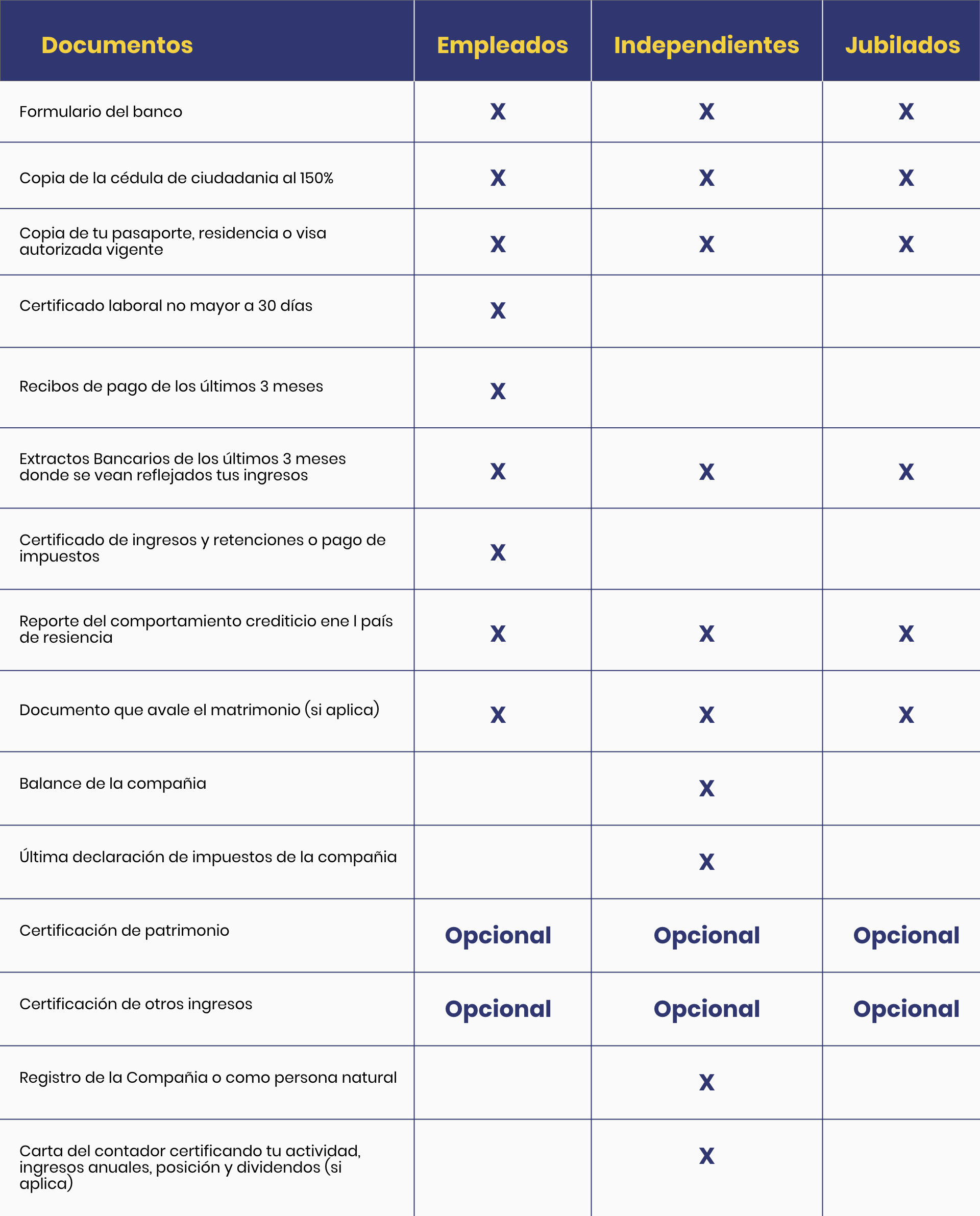 Por lo general, las entidades bancarias exigen un mínimo y máximo de edad. Para colombianos en el exterior son desde los 18 hasta los 72 años dependiendo de la entidad financiera, estabilidad laboral y el siguiente listado de documentos.